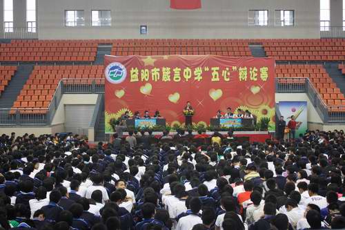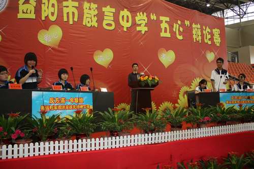 為進一步深化“五心”教育,鍛煉學生的思辯能力和口頭表達能力,我校學生處、團委於4月15日下午組織高一、高二學生在體育館進行了“五心”辯論賽的決賽。辯題是“冬奧會冠軍周洋應該先感謝父母還是祖國”。高一年級為反方,高二年級為正方。