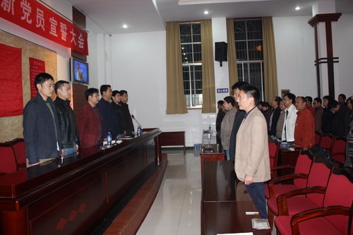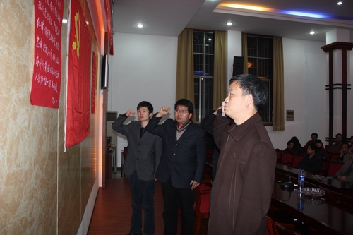 4月21日晚,我校在辦公樓一樓會(hui) 議室隆重舉(ju) 行新黨(dang) 員宣誓大會(hui) 。何騰、何界華、謝雄三位老師通過莊嚴(yan) 宣誓正式成為(wei) 一名預備黨(dang) 員。