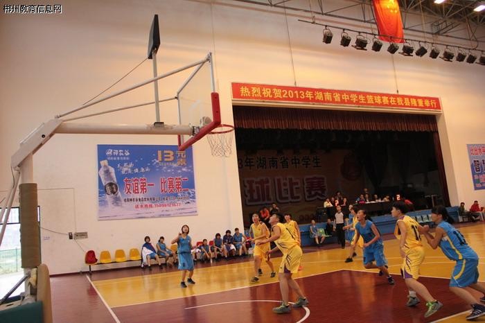 圖為(wei) 桂陽三中和我校女籃(黃)的比賽中