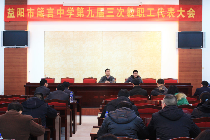 為(wei) 了加強學校民主政治建設,推進校務公開、民主管理,保障教職工知情權、參與(yu) 權、表達權和監督權,經過精心組織、統疇安排,2013年2月6日,我校第九屆三次教職工代表大會(hui) 在辦公樓一樓會(hui) 議室隆重召開。經過民主選舉(ju) 出來的87名代表參加了這次會(hui) 議,赫山區教育局工會(hui) 主席陳堃親(qin) 臨(lin) 會(hui) 議指導。