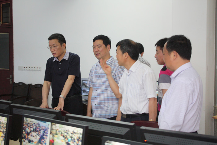 楊躍濤一行在校長孟德良的陪同下,重點視察了我校的電子監控室、聽力係統等設施設備,並詢問了高考各項工作準備情況,孟校長一一作了詳細匯報。楊躍濤對我校的高考前期準備工作給予充分肯定,並指出高考考務工作任務重、壓力大、要求高、情況複雜,學校要提早精心準備部署、嚴(yan) 格自查,確保高標準地完成考前準備工作。孟校長表示,在高考來臨(lin) 之際,學校將進一步對高考相關(guan) 設施設備進行排查和改造,對高考工作人員進行強化培訓,確保實現“平安高考,公平高考,溫馨高考”。