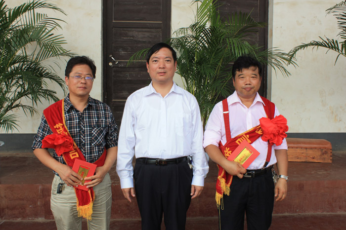 楊超群(左一)、嶽建福(右一)兩(liang) 位老師與(yu) 孟校長合影