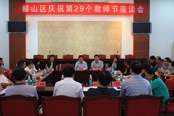 9月10日,赫山區慶祝第29個(ge) 教師節座談會(hui) 在我校舉(ju) 行,區委書(shu) 記賀輝、區委常委、常務副區長王兆銘等出席座談會(hui) 。