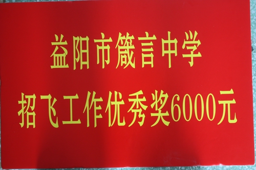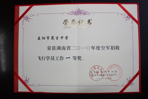在表彰總結2010年招飛工作時,我校榮獲湖南省招收飛行學員工作一等獎,被授予“空軍招飛優質生源基地”,我校招飛專幹湯嶽林老師榮獲先進個人稱號。