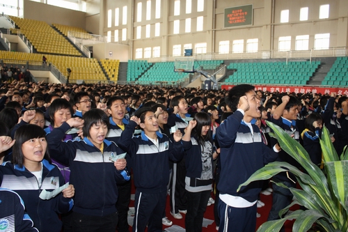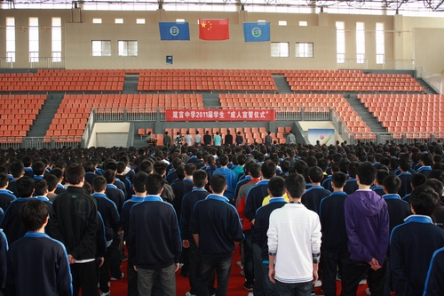 成人,是學生人生曆程上的一件大事。為加強學生的成人責任教育活動,增強學生的成人意識、愛國主義思想,增強責任心、自信心和使命感,我校團委與高三年級組聯合在體育館舉行了2011屆學生成人宣誓儀式。校領導、學生家長代表及近2000名年滿18周歲的學生參加了宣誓儀式。
