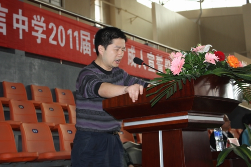 會上,蔡奇文校長作了熱情洋溢的講話,他向即將跨入共和國公民行列的同學們表示祝賀,並希望同學們牢記箴言校訓和“五心”教育,做一名求上進、敢擔當、懂感恩的有誌青年。接著發言的還有老師、家長及青年學生代表。老師的殷切期盼、家長的語重心長、學子的成人心聲打動了台下的每一名聽眾,全場不時爆發出雷鳴般的掌聲。