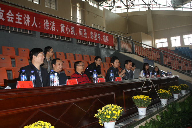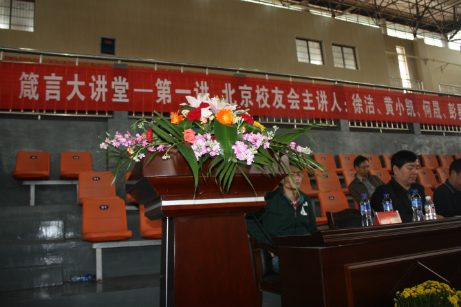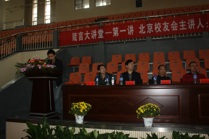 箴言中學“箴言大講堂”係列活動之“北京校友會回母校報告會”於2011年10月5日上午在學校體育館順利舉行,赫山區教育局局長陳維國,學校黨總支書記、校長孟德良,高三年級班主任、任課教師和全體高三同學參加了報告會。本次報告會邀請了箴言中學北京校友會會長董安民、秘書長林海軍和部分北京校友會成員回校做報告。