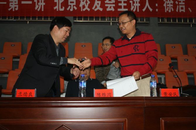 活動首先由北京校友會會長董安民就北京校友會的成立、活動發展和未來規劃做介紹,並與孟德良校長舉行了箴言中學獎學金“魯班獎”讚助簽約儀式。然後由部分箴言中學優秀校友就學習方法、專業發展、誌願填報、就業等主題與高三學生進行交流,在互動提問環節中,校友們回答了同學們所提出的問題,對同學們在學習中遇到的困惑提出了自己的想法和建議。整個報告會內容充實、實例生動、貼近實際、語言幽默詼諧、效果很好,使在場的同學們受益良多。