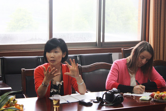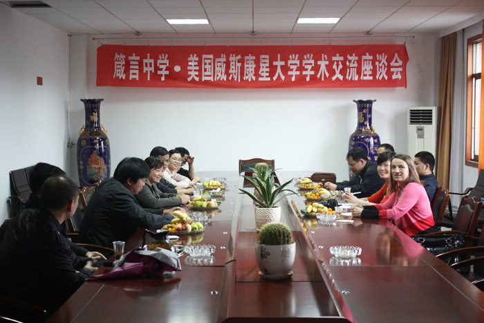 學校曹臘生副校長熱情的接待了訪問團,並進行了會(hui) 談。雙方介紹了各自學校的發展情況及教育理念,並就教師專(zhuan) 業(ye) 發展和培訓、雙方師生交流訪問、威斯康星大學白水分校學生來我校實習(xi) 等合作事宜進行了討論,為(wei) 進一步交流合作打下了基礎。