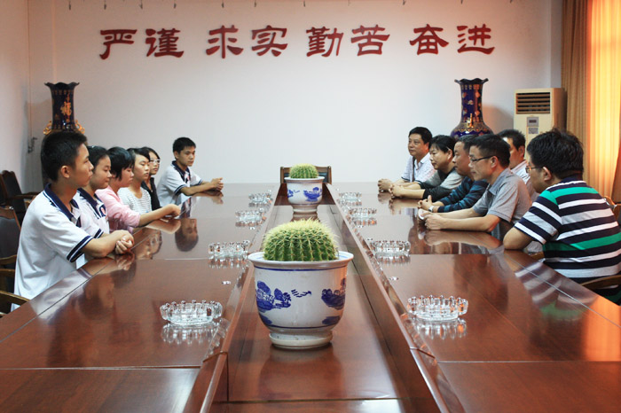 10月12日下午,蘭(lan) 溪鎮中心學校曹武林校長一行四人親(qin) 臨(lin) 我校,與(yu) 該校2013年畢業(ye) 考入我校的6名同學進行親(qin) 切座談並每人跟蹤獎勵500元。