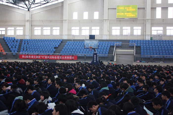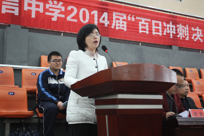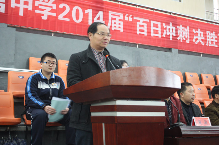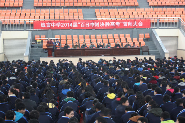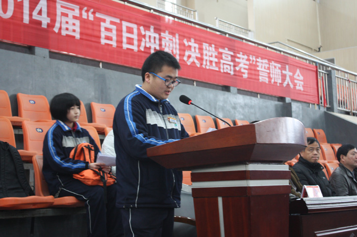 惜光陰百日猶短,眾(zhong) 誌成城拚第一;細安排一刻也長,龍爭(zheng) 虎鬥誰爭(zheng) 鋒。2月28日上午,學校校領導、全體(ti) 高三師生和部分家長齊聚我校體(ti) 育館,隆重舉(ju) 行2014年高考百日誓師大會(hui) ,擂響了高考百日衝(chong) 刺、決(jue) 戰六月的“戰鼓”。