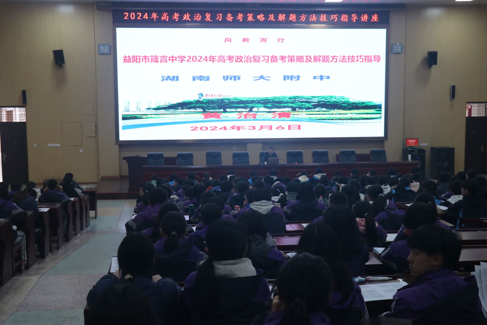 3月6日,湖南師大附中黃治清教授應邀來到箴言中學,為(wei) 高三學生作思想政治高考備考專(zhuan) 題講座。學校全體(ti) 思政老師、赫山區其他高中學校高三思政老師參會(hui) 。