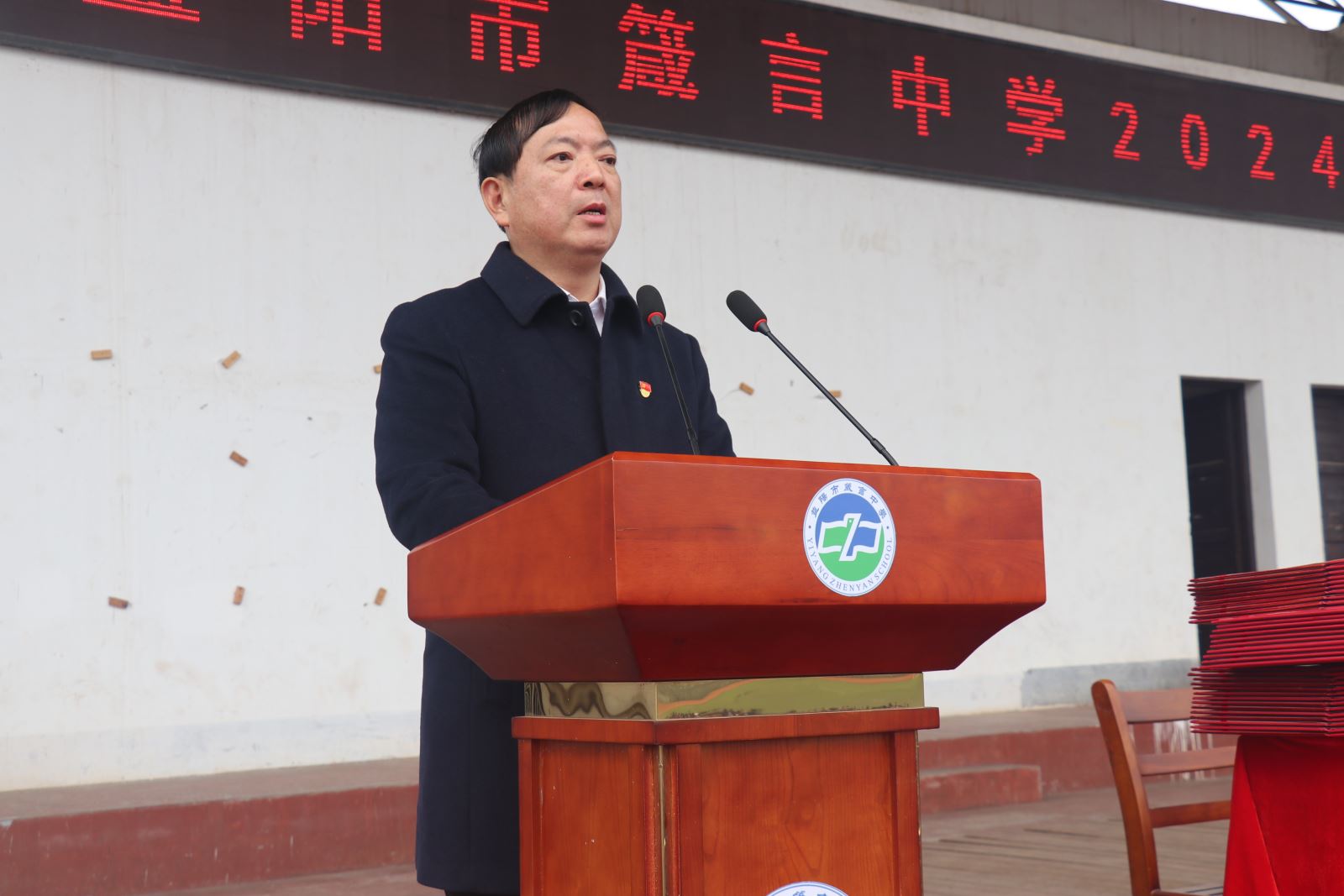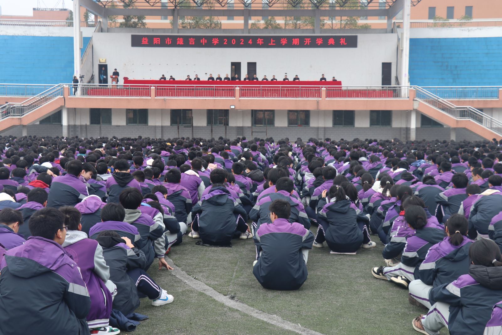 3月7日上午,箴言中學2024年春季開學典禮在學校田徑運動場隆重舉(ju) 行。學校全體(ti) 行政領導於(yu) 主席台就座,辦公室主任賈政軍(jun) 主持大會(hui) 。