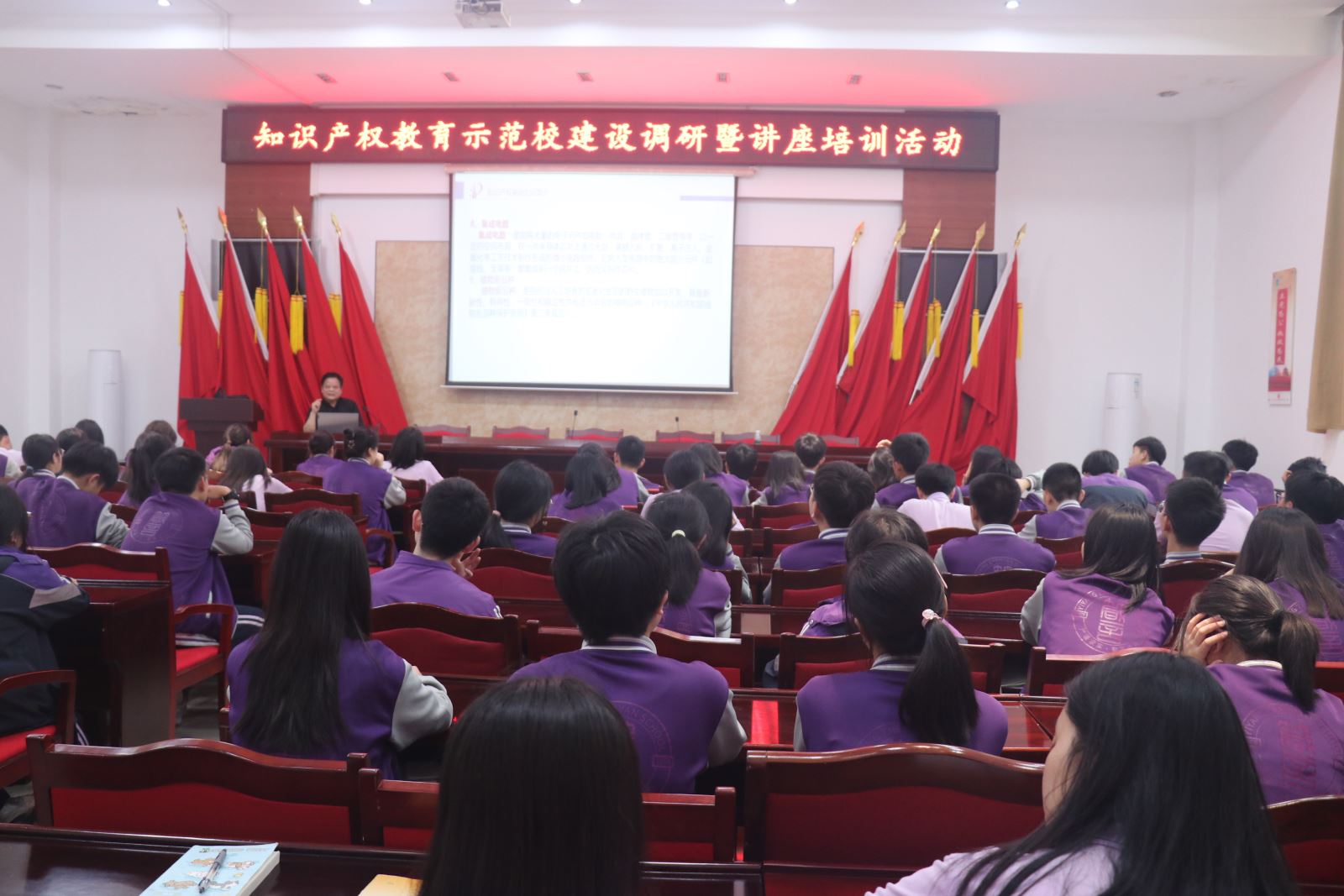 活動分為(wei) 兩(liang) 部分,調研座談會(hui) 中,箴言中學張鑫老師代表學校作了知識產(chan) 權示範學校建設情況的匯報發言,省市場監督管理局一級調研員王順其和市局領導劉誌春等領導、專(zhuan) 家作了指導性交流,充分肯定了箴言中學在知識產(chan) 權示範學校建設方麵取得的成就,並就後階段的高質量發展提出了建設性意見。培訓講座由專(zhuan) 家王順其主持,部分學生代表參與(yu) ,進一步增強了學生對知識產(chan) 權保護的意識和能力。