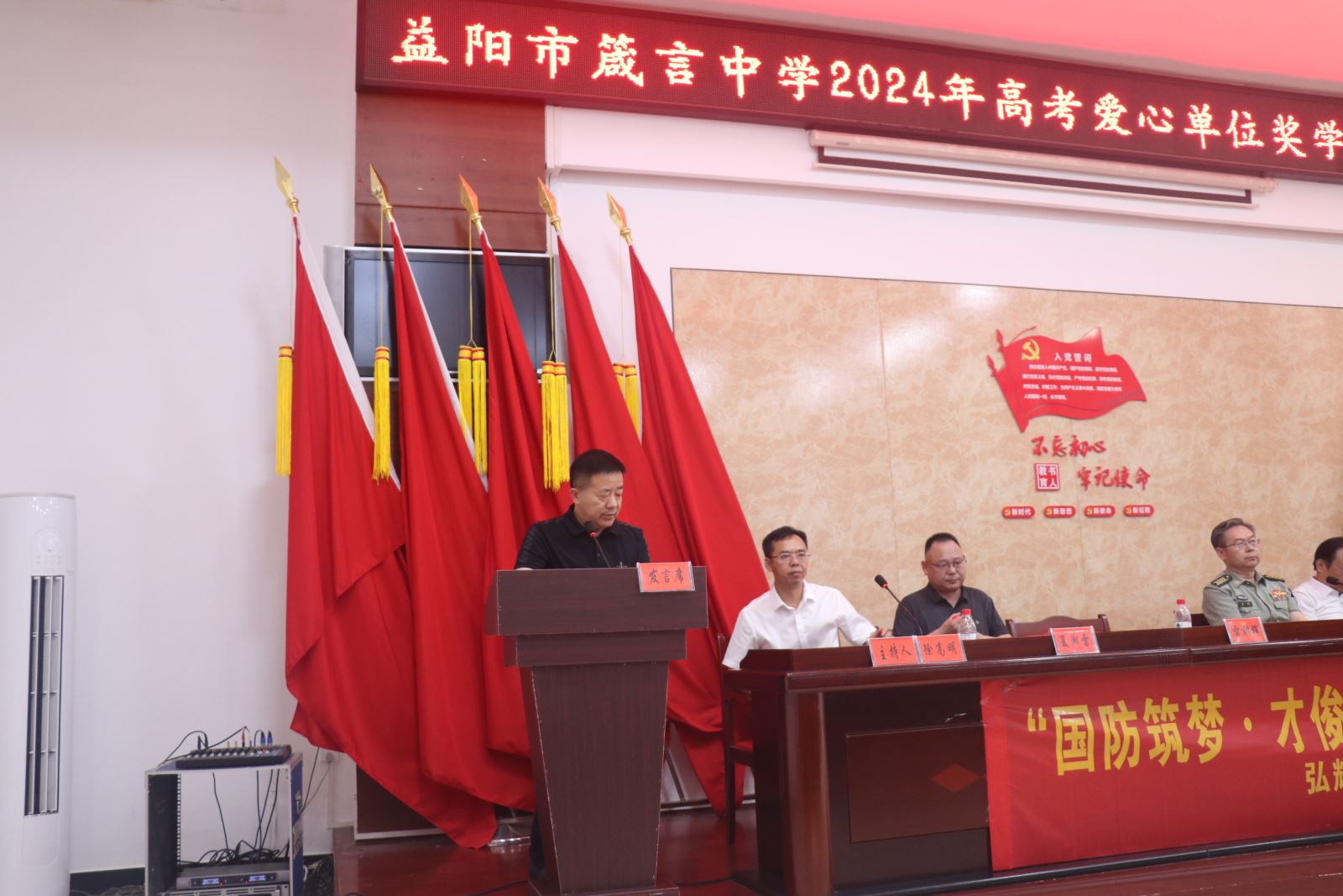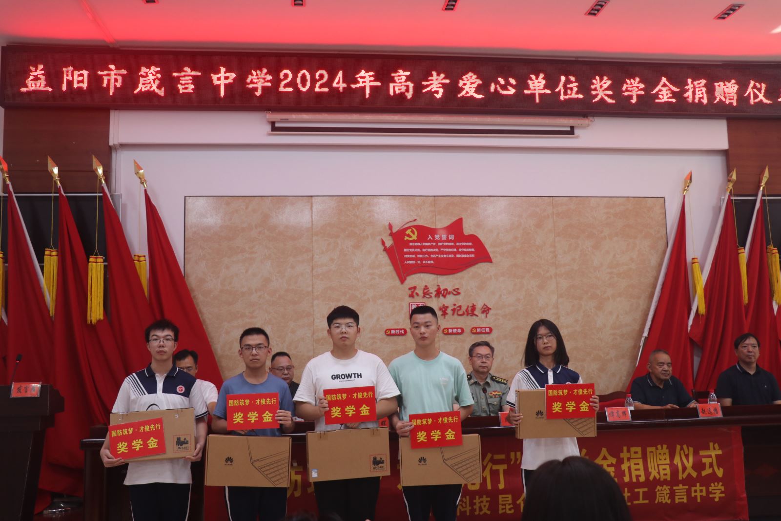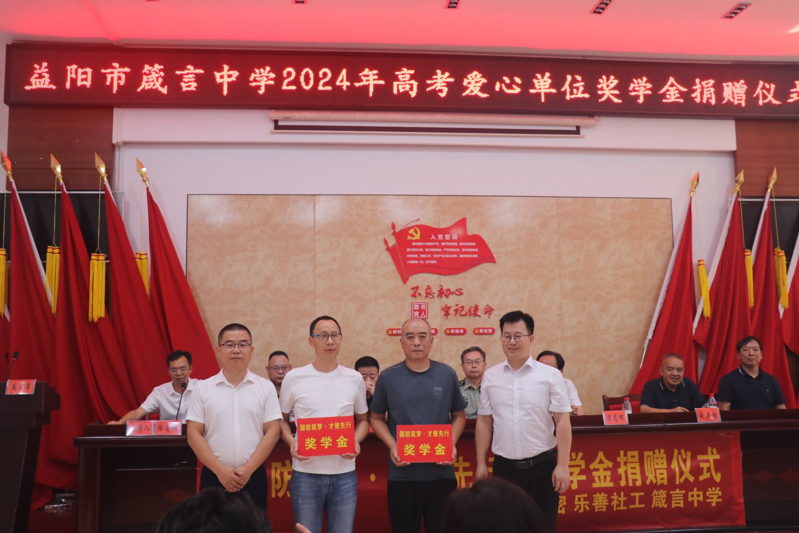 金秋八月,喜訊頻傳(chuan) 。8月7日,华体汇体育电隆重舉(ju) 行2024年高考愛心單位獎學金捐贈儀(yi) 式,市級領導、愛心單位負責人、赫山區教育局以及箴言中學負責人、老師代表、獲獎學生等參加頒發儀(yi) 式。頒發儀(yi) 式由箴言中學校友辦主任徐高明主持。