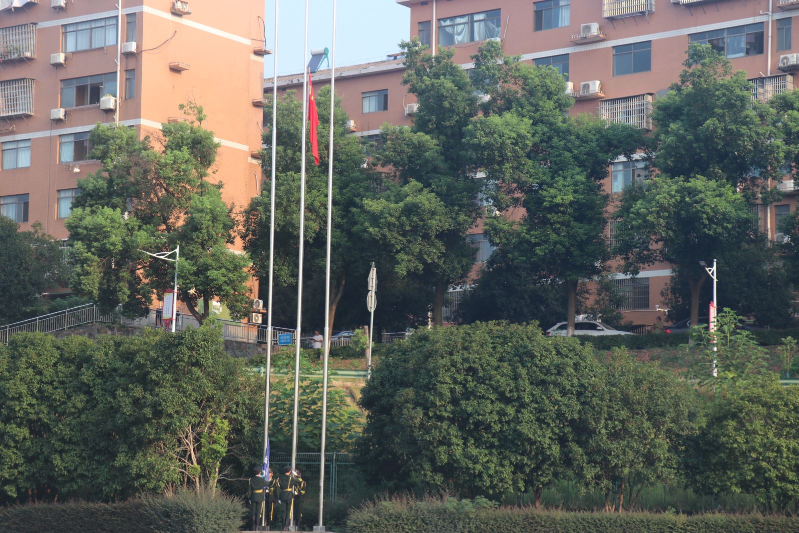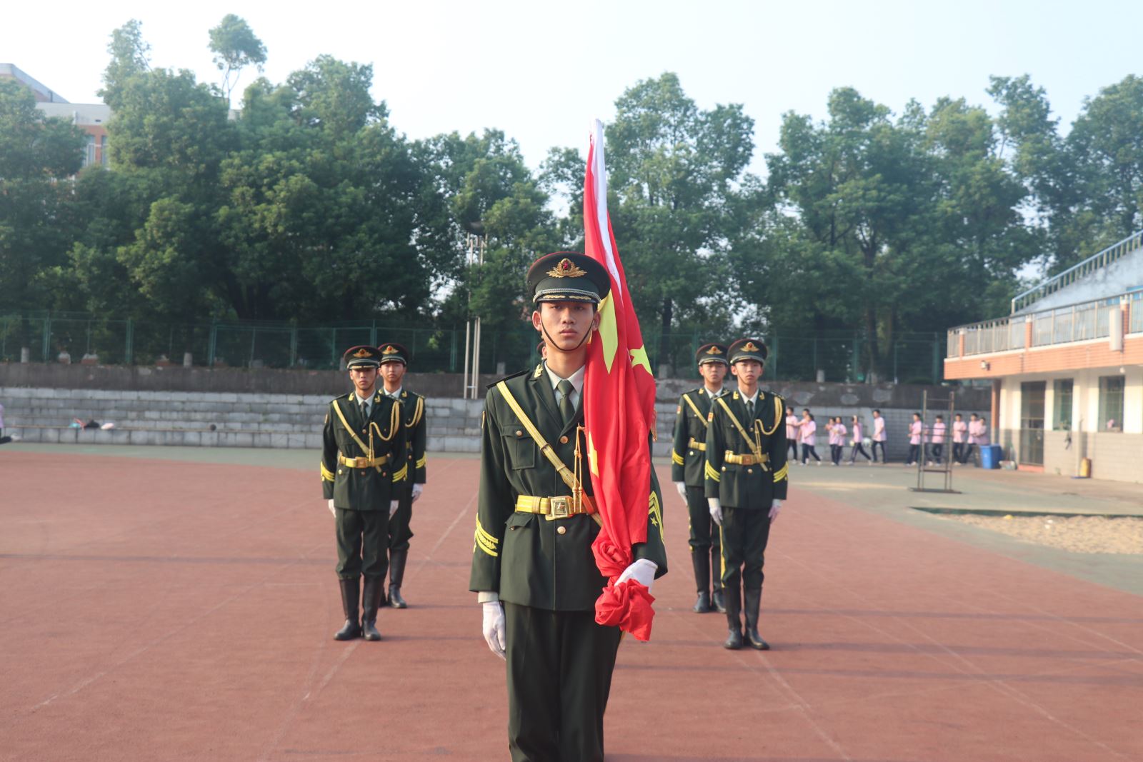 在莊嚴(yan) 雄渾的國歌聲中,同學們(men) 迎著朝陽,以滿腔熱血激昂青春歲月,用不懈奮鬥追逐遠大夢想。