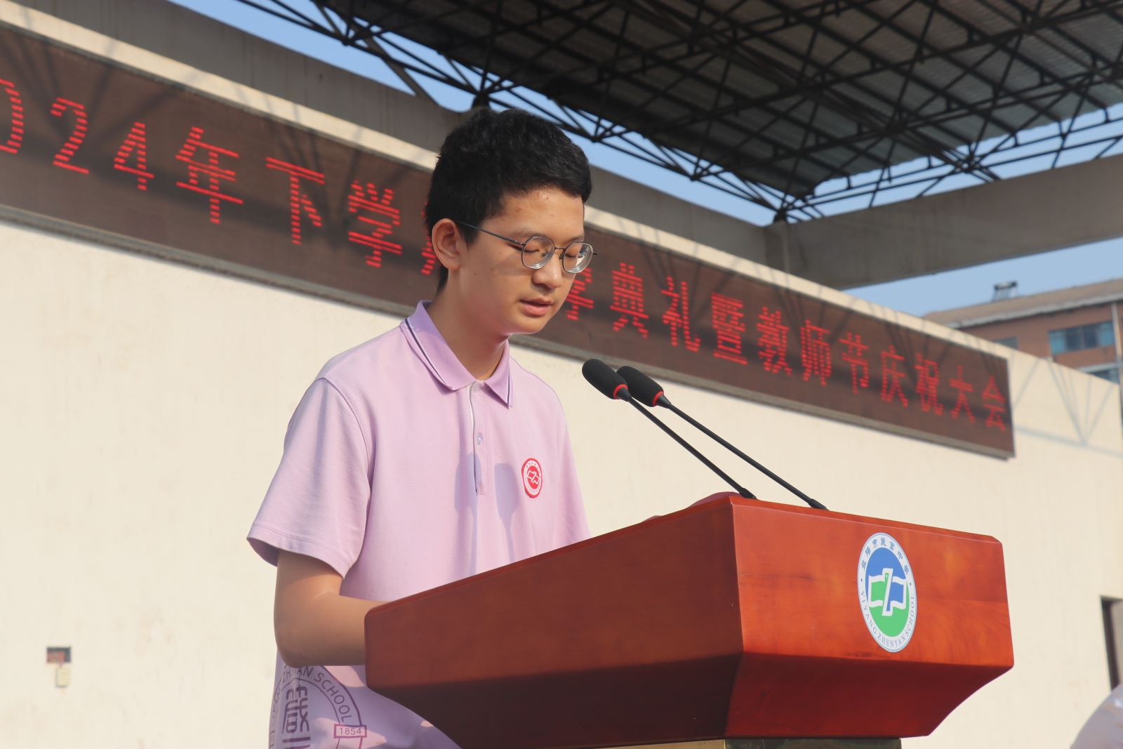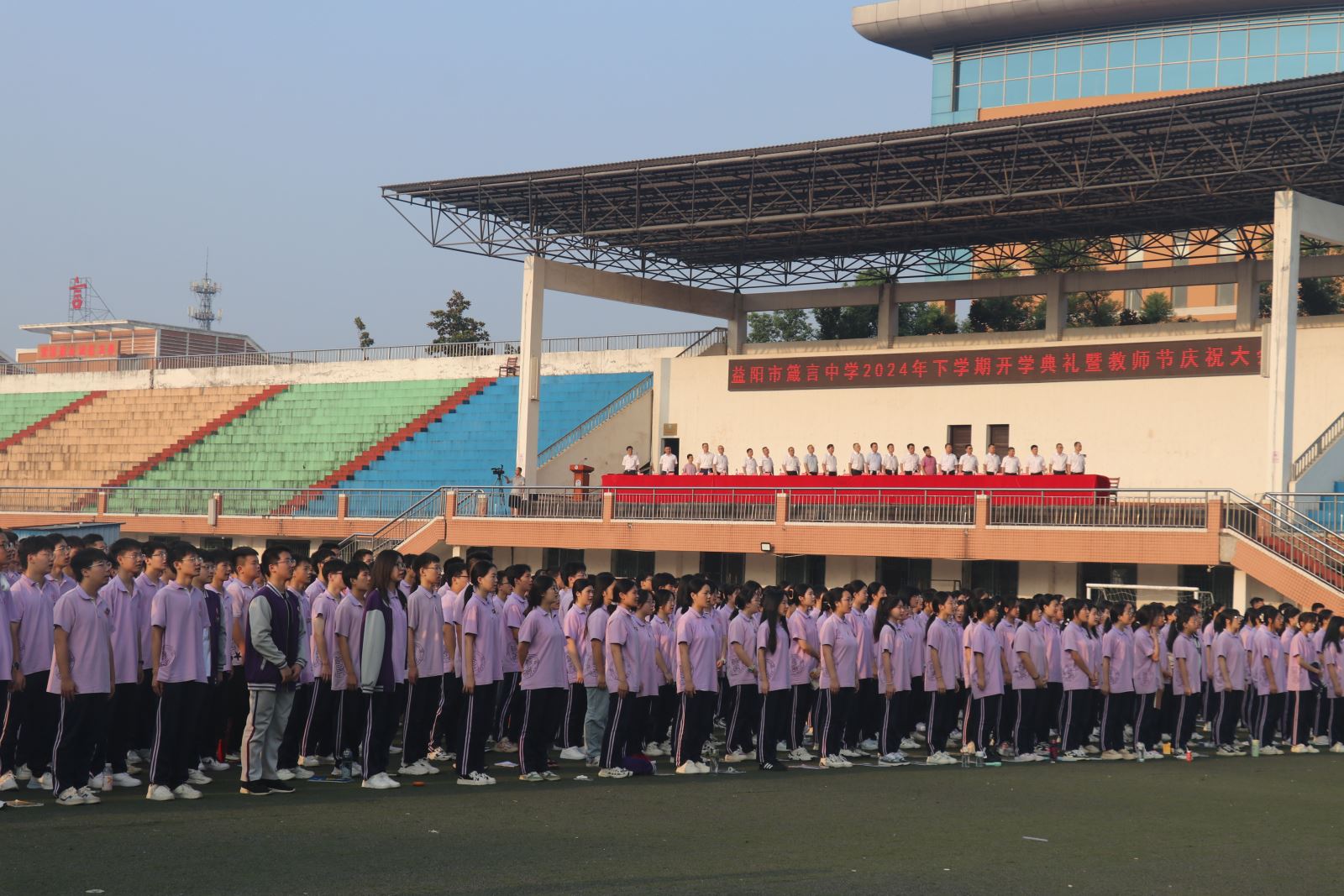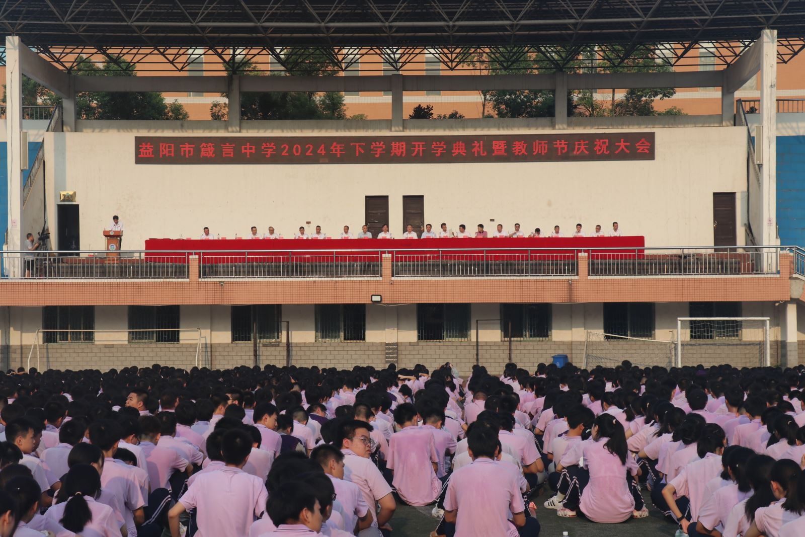 新學期,新起點,新希望。9月10日上午,箴言中學2024年秋季開學典禮暨教師節慶祝大會(hui) 在學校田徑場隆重舉(ju) 行,全體(ti) 師生以飽滿的熱情和昂揚的精神風貌齊聚校園,共同開啟新的征程。學校全體(ti) 行政人員出席開學典禮,活動由辦公室主任賈政軍(jun) 主持。